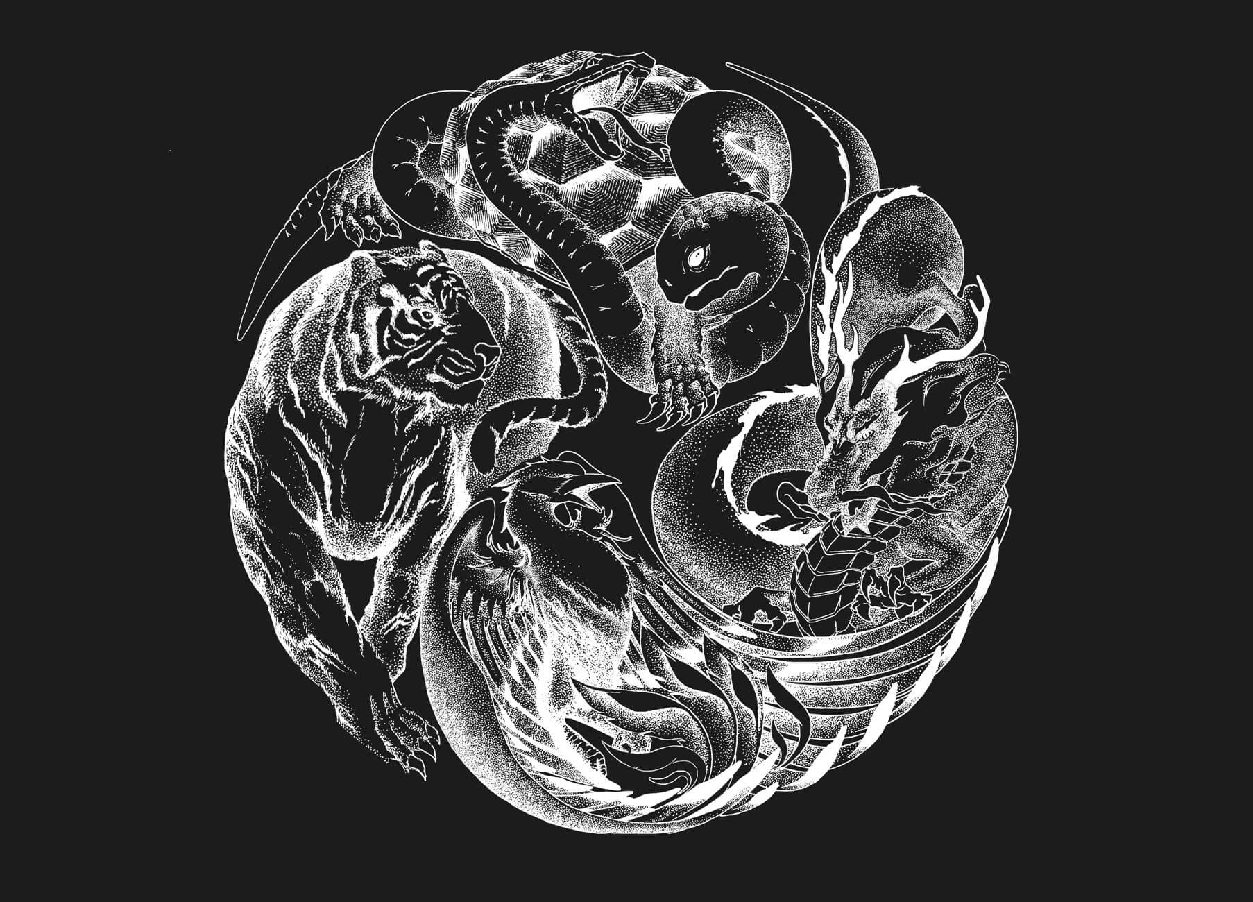 古時中國,人們認(rèn)為萬物變化皆可借天星卜算,結(jié)合四時變化(春夏秋冬)和四方星宿(東南西北)連綴想象,演變出青龍、白虎、玄武、朱雀四象靈物,象征萬象演化,陰陽轉(zhuǎn)換。用四大神獸作為超級視覺符號,采取太極陰陽結(jié)合的展現(xiàn)方式,重新構(gòu)造了四象IP與現(xiàn)代飲茶的生活。