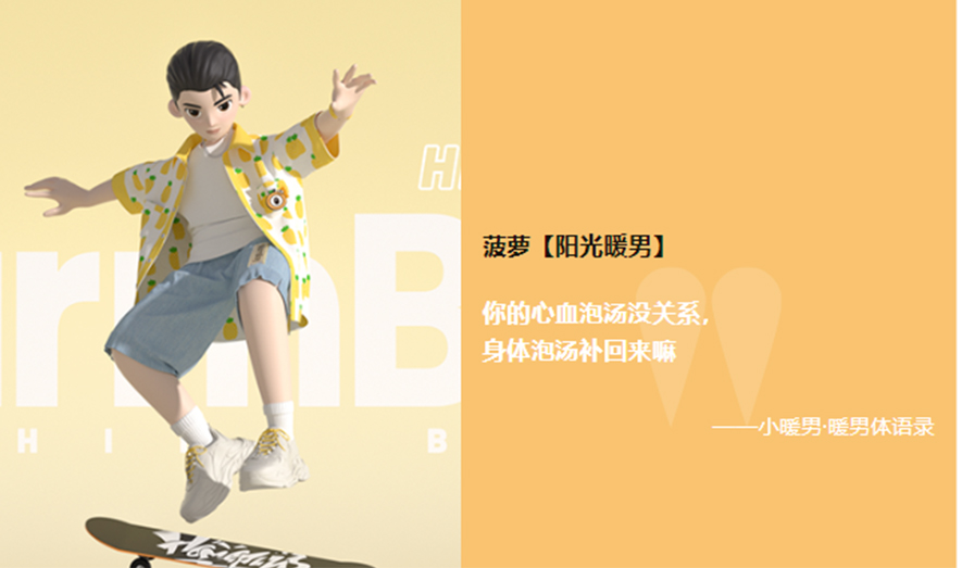「小暖男」,要為暖男正言。從定位、標(biāo)簽、人設(shè)到最終的運(yùn)用,「小暖男」以“新國(guó)標(biāo)暖男”為角色設(shè)定,為IP設(shè)定一個(gè)獨(dú)一無二的人物性格。