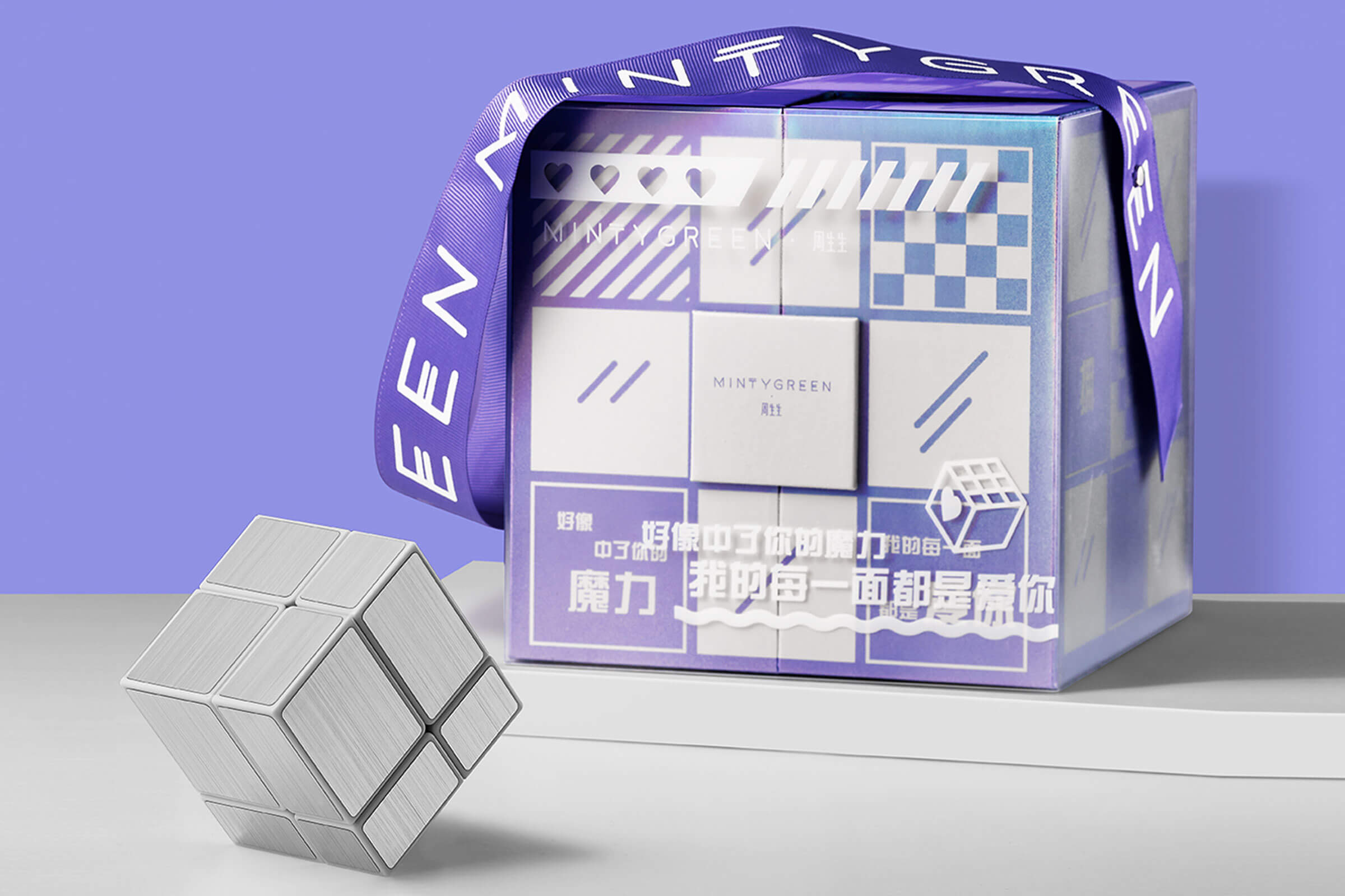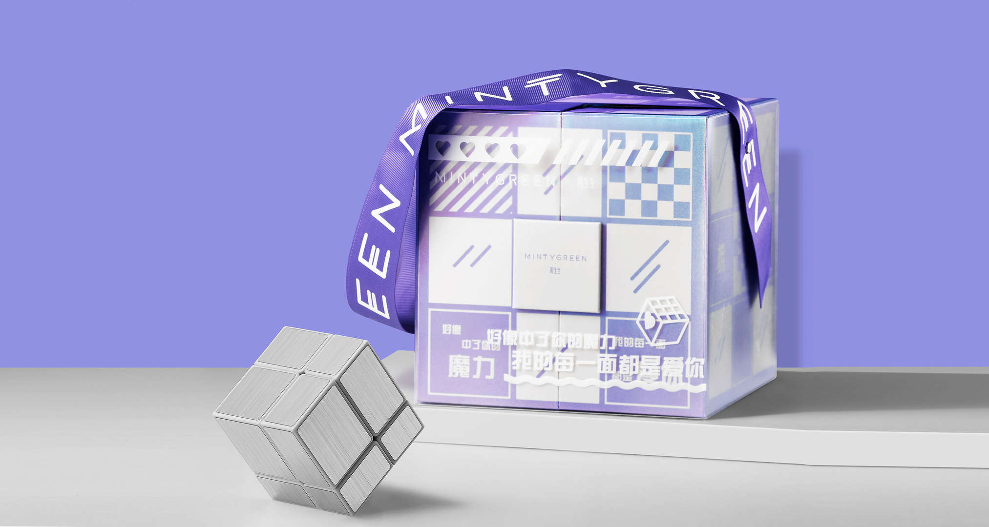 愛情就像不停旋轉(zhuǎn)的魔方,因未知,才讓我們充滿幻想,為已知,才齊心向陽春暖花開,愛的魔方,拼出愛的不同模樣,禮盒的每一面都是告白話語,守護你、陪伴你,一面是溫柔浪漫,一面是心動至上。
