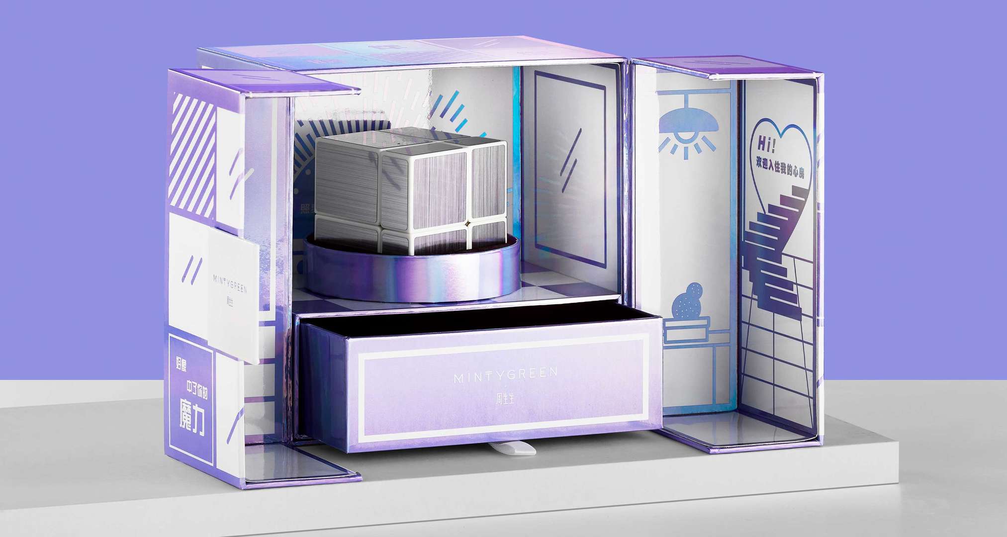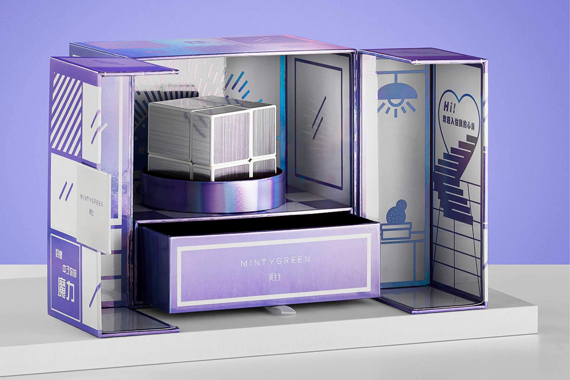 禮盒以獨特鐳射材質(zhì)打造,表面覆蓋著細密銀粉,光線下閃耀著迷人光彩,如夢似幻,猶如夜空中璀璨的星辰,充滿神秘與浪漫。輕啟禮盒,宛如步入一個充滿驚喜的小世界,內(nèi)部房間式設計匠心獨運,細節(jié)之處盡顯精致,令人嘆為觀止。