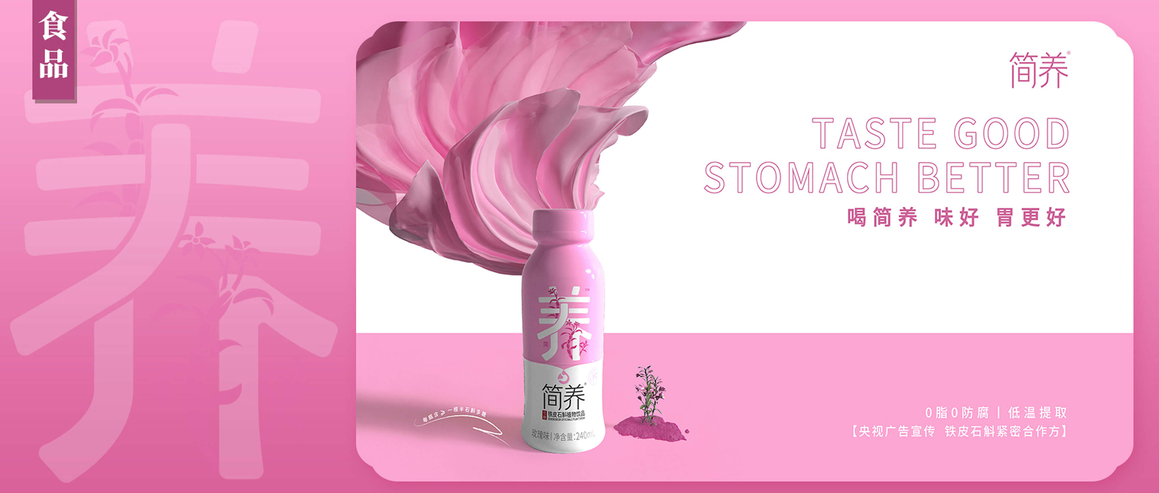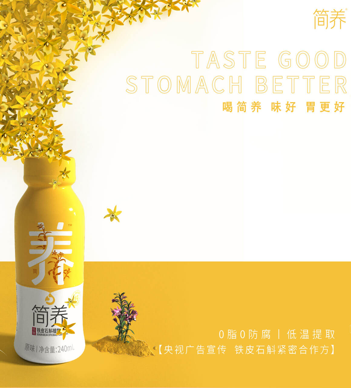 【簡(jiǎn)養(yǎng)】是一個(gè)以鮮鐵皮石斛萃取原液的養(yǎng)胃植物飲料品牌,專注為消費(fèi)者打造的健康飲料品牌。2023年,柏星龍與【簡(jiǎn)養(yǎng)】品牌創(chuàng)意攜手,為簡(jiǎn)養(yǎng)產(chǎn)品搭建從0-1的落地執(zhí)行路徑,從新的視覺(jué)維度打造與眾不同的養(yǎng)生飲料品牌。