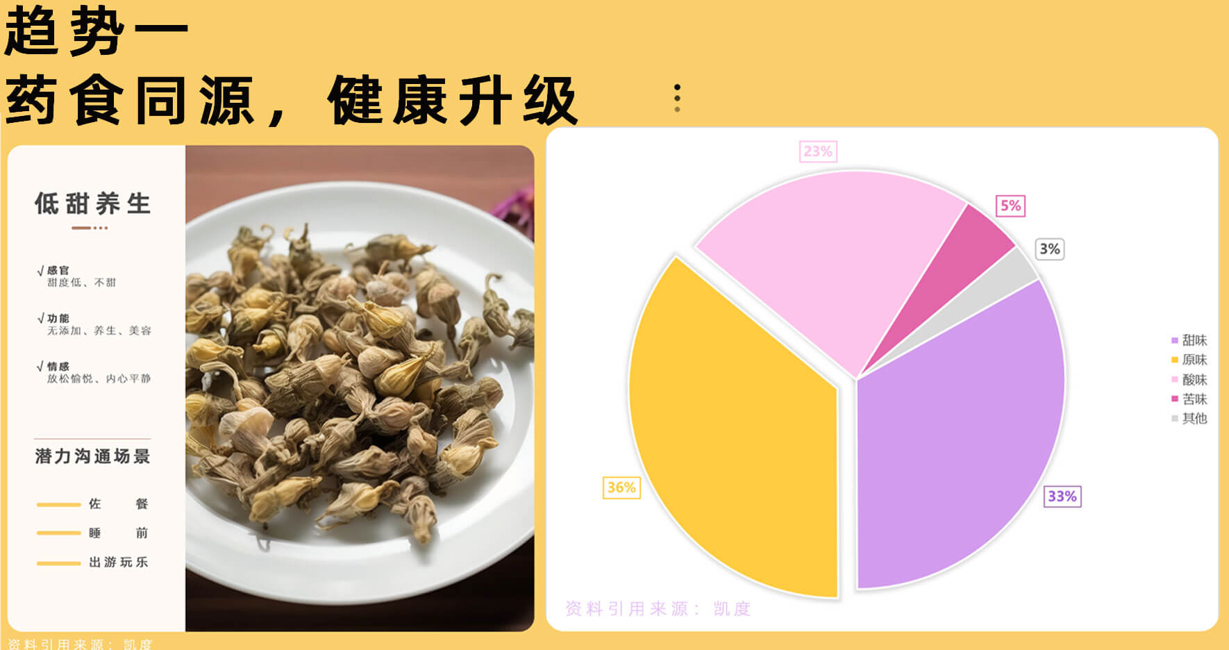 幸福之源不止于甜味,藥食同源支撐健康食材更升級(jí)。低甜、自然本真的口味特征,很好匹配“低甜養(yǎng)生”與“本味節(jié)制”消費(fèi)者感官需求,適配餐后、學(xué)習(xí)等潛力場(chǎng)景。
