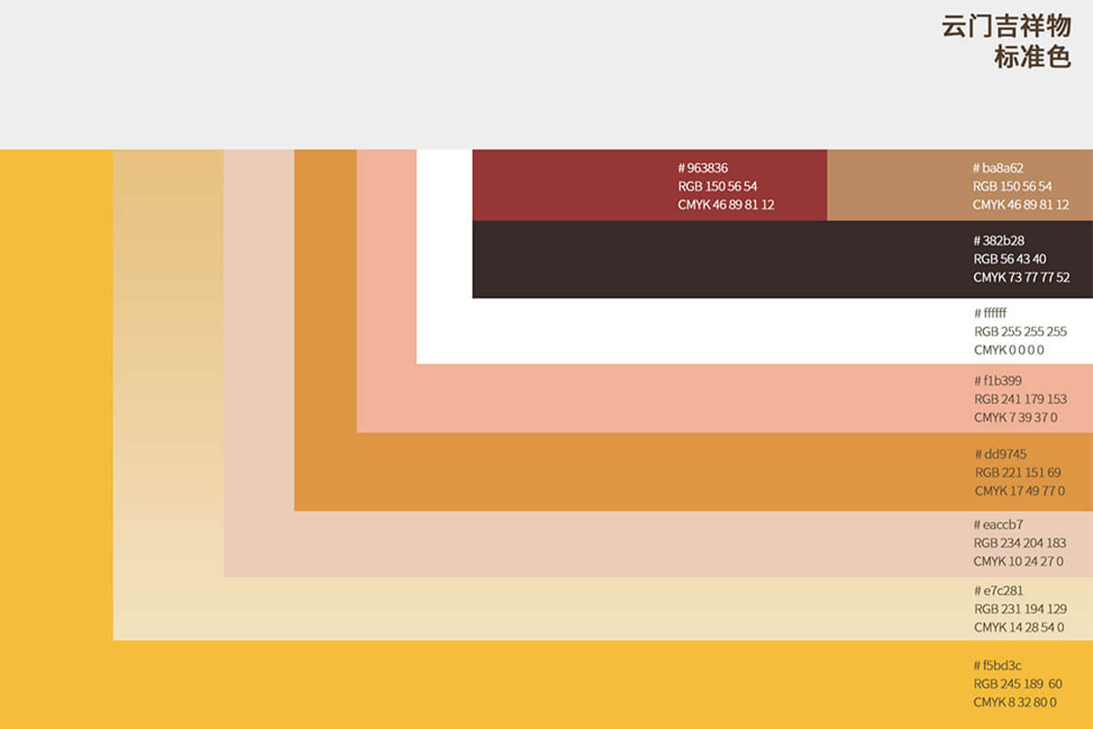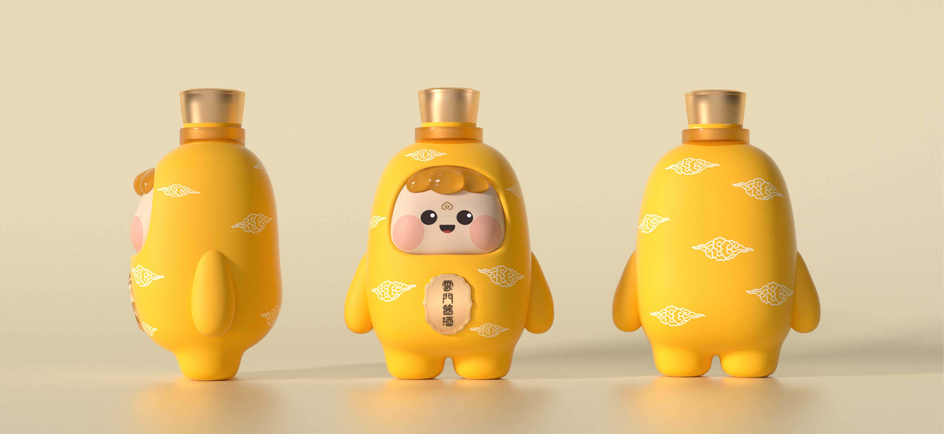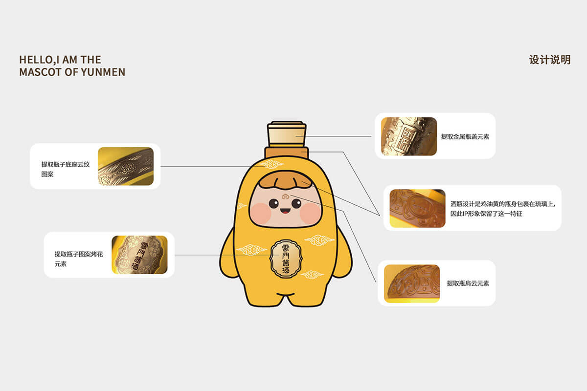 通過持續(xù)塑造標準色與IP的結(jié)合,此次云寶形象設計延續(xù)了,云門醬酒瓶的標準配色,保證了品牌視覺感官一致性。