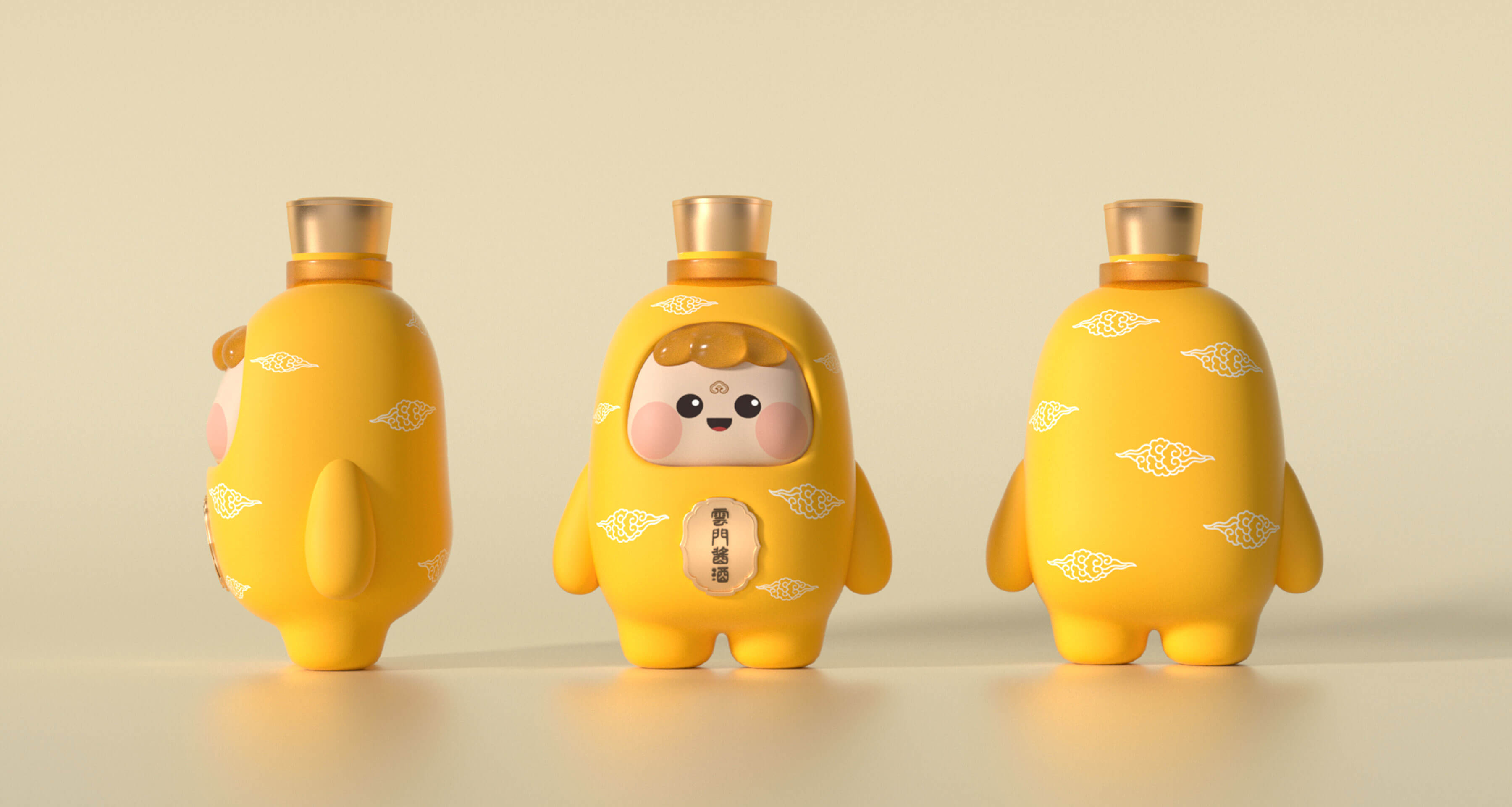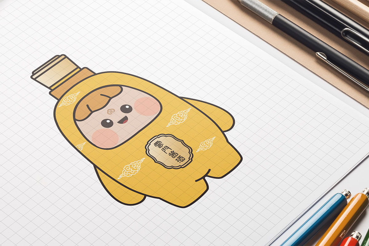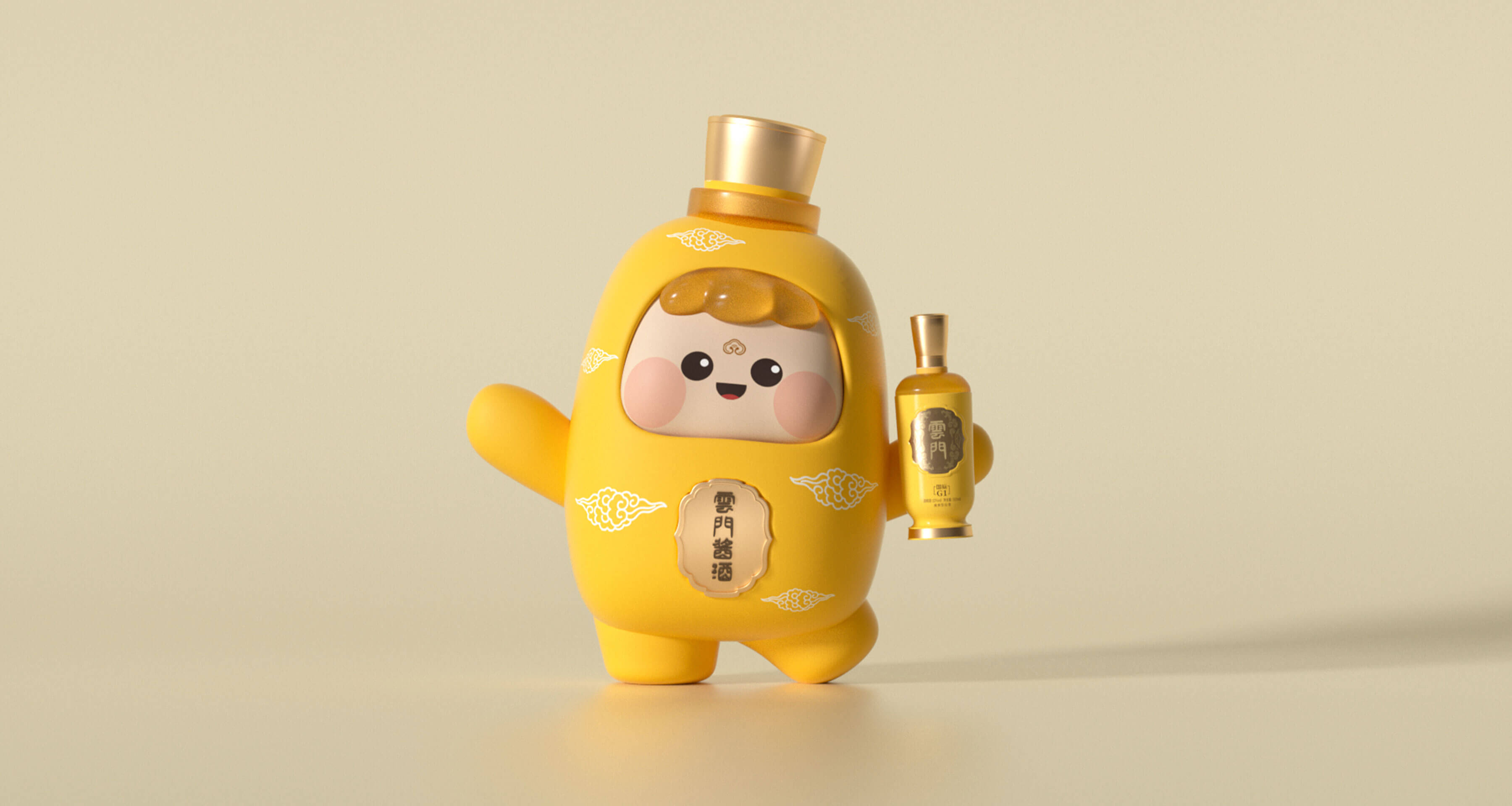 通過持續(xù)塑造標準色與IP的結(jié)合,此次云寶形象設計延續(xù)了,云門醬酒瓶的標準配色,保證了品牌視覺感官一致性。