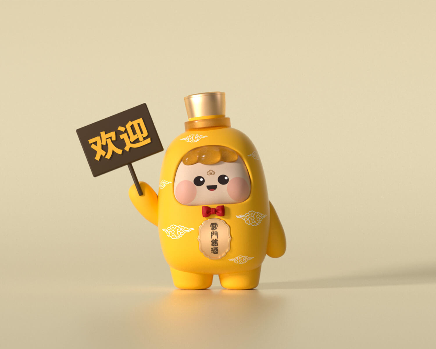 云寶臉部四肢更加Q版的形象設計,憨態(tài)可掬的神態(tài),寓意著云門醬酒為用戶提供真實、可信、快樂購酒的初心。